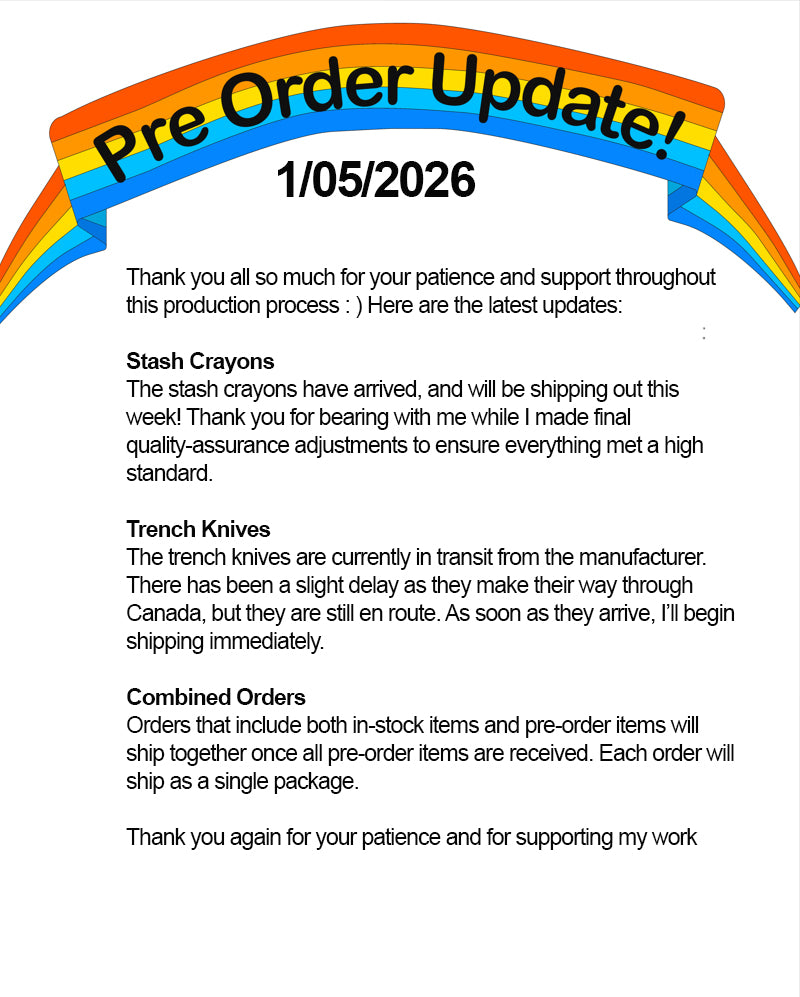 Stash Crayon/Trench Knife Pre Order Updates